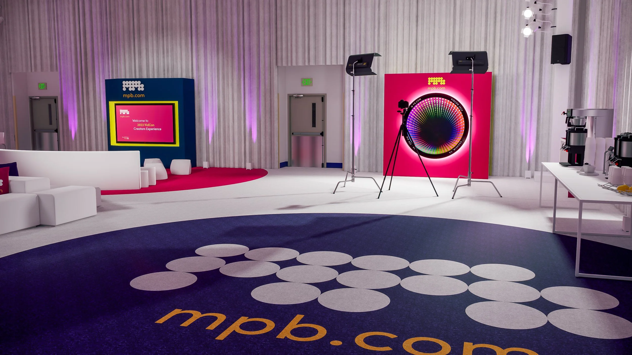 Stoelt Productions brought MPB’s brand to life with an immersive booth on the Creator’s Track at VidCon in Anaheim, CA. Designed to captivate and engage creators, the booth featured interactive experiences, including a custom camera lens infinity mirror, a striking Mylar photo wall, and hands-on learning stations where creators could explore the latest gear.