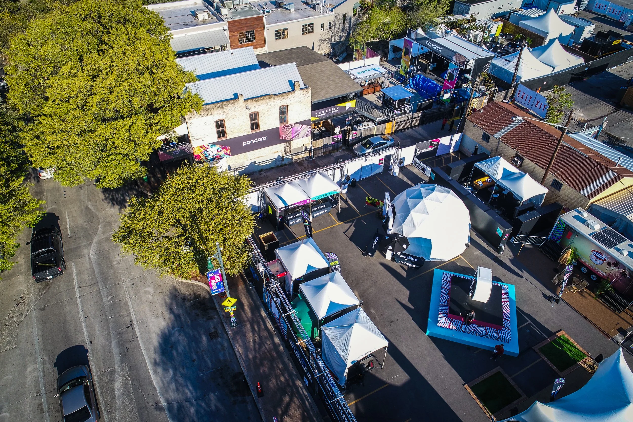 In 2017, Stoelt Productions partnered with Pandora to create an unforgettable activation at South by Southwest (SXSW) in Austin, Texas, celebrating the launch of Pandora Premium. Spanning three city blocks and encompassing 300,000 square feet, the activation transformed Austin’s iconic 6th and 7th streets into a vibrant festival experience. This large-scale endeavor showcased Pandora’s dedication to connecting fans with the music they love, featuring a custom-built stage, dynamic sponsor activations, and an artist village. The installation embodied the energy and innovation of Pandora’s brand while standing out as one of the most significant footprints in SXSW history.