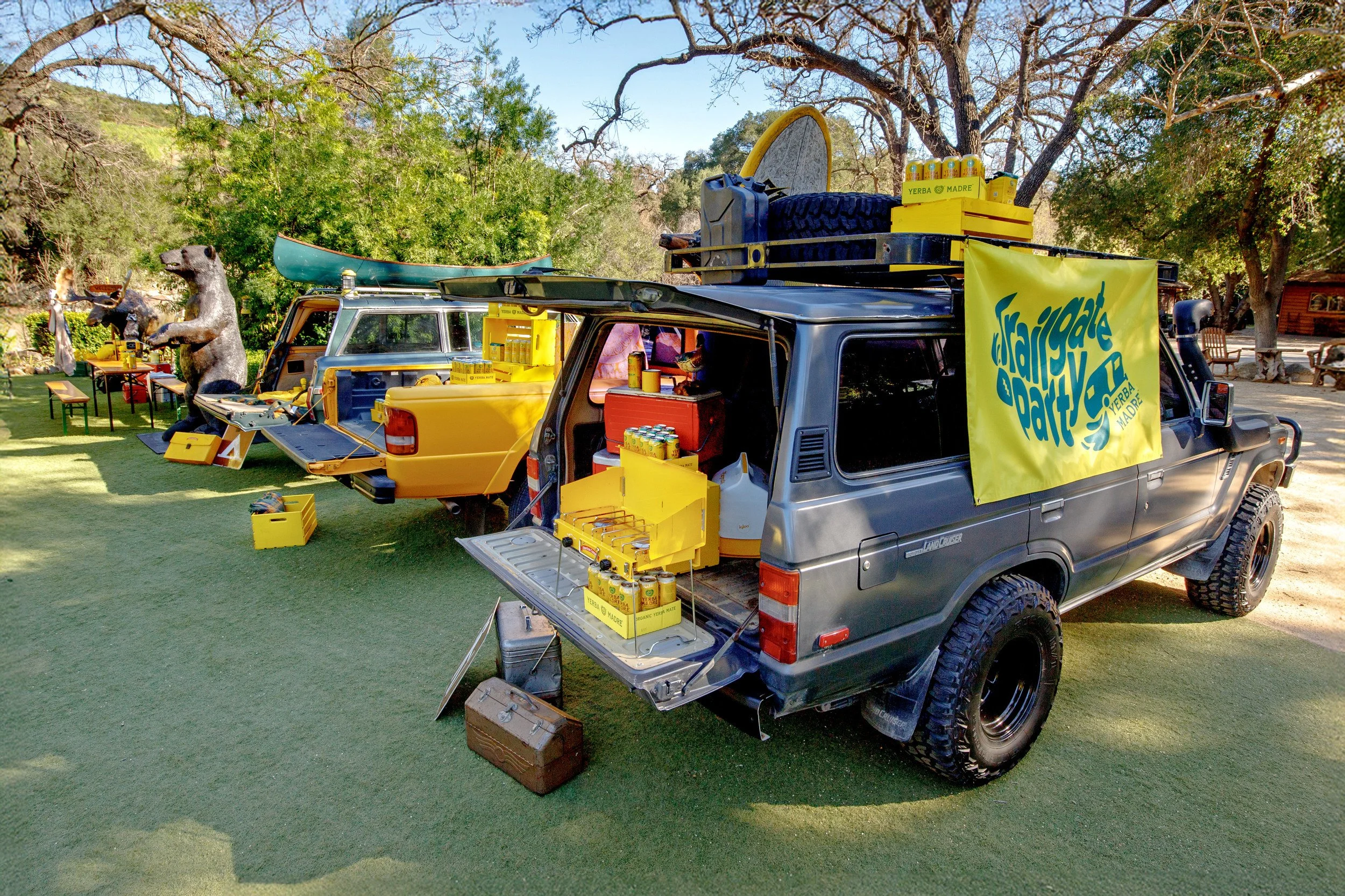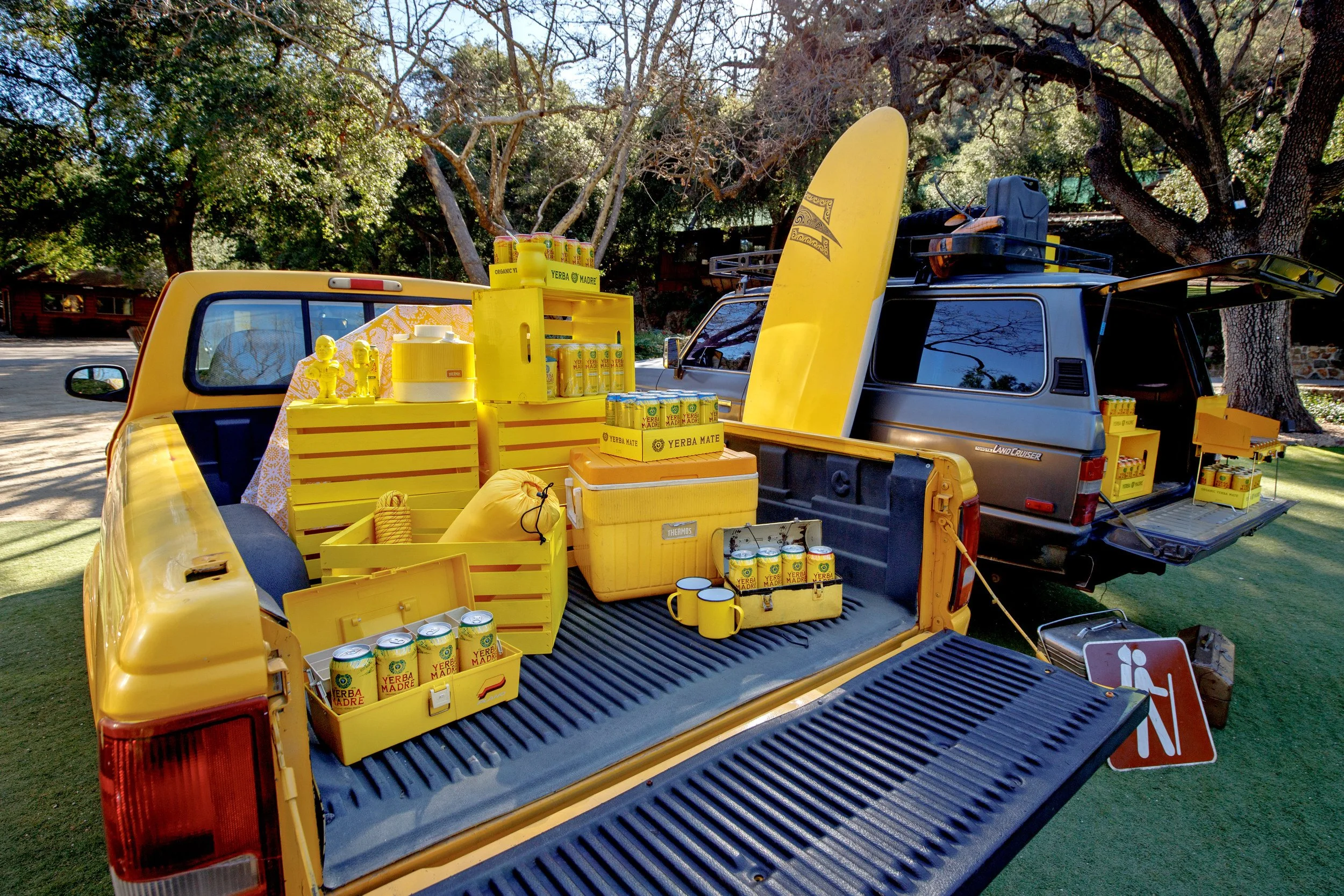 ACTUALIZATION: Stoelt Productions led the fabrication, design, and execution of Yerba Madre’s “Trailgate,” transforming a 50-acre ranch into a monochromatic yellow campsite-meets-tailgate experience for hiking, content creation, and Super Bowl viewing.